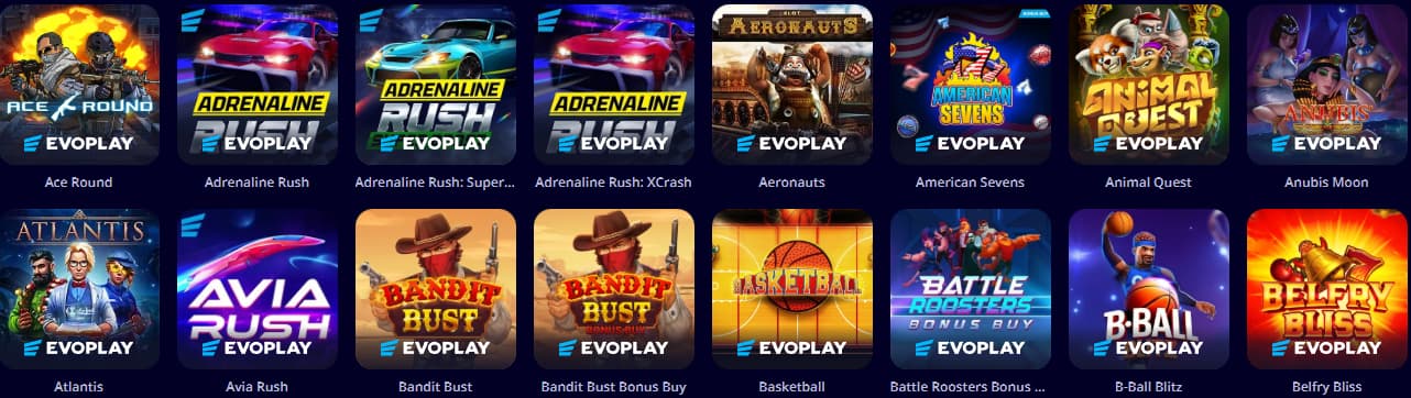 Providers | Evoplay, Play'n GO, Betsoft, Evolution, Gamzix, Yggdrasil, Gamomat, Spinomenal |